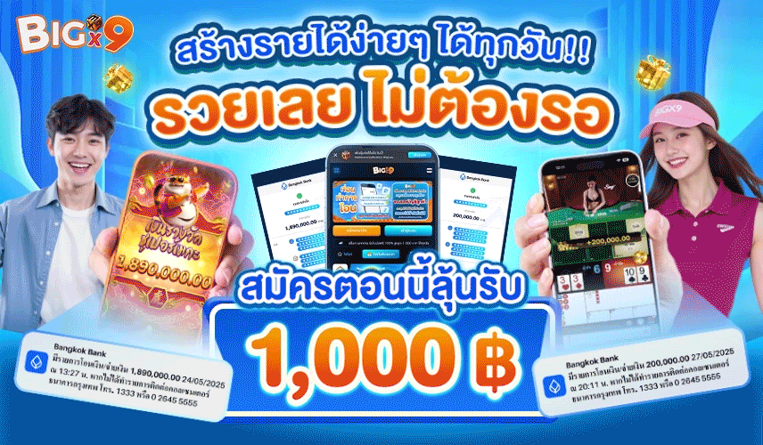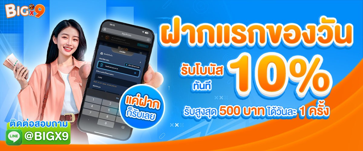 เว็บพนันออนไลน์ BigX9 ศูนย์รวมเกมเดิมพันครบวงจร ให้บริการตลอด 24 ชั่วโมง พร้อมระบบฝาก-ถอนอัตโนมัติรวดเร็วภายใน 30 วินาที รองรับทุกธนาคารและ True Wallet มาพร้อมเกมหลากหลายรูปแบบทั้งสล็อต บาคาร่า กีฬา คาสิโนสด และหวย จากค่ายดังระดับโลก อัพเดทเกมใหม่ๆ ทุกสัปดาห์ ระบบเสถียรรองรับการเล่นทั้งบนมือถือและคอมพิวเตอร์ มีทีมงานคอยให้คำปรึกษาตลอด 24 ชม. เริ่มต้นเดิมพันขั้นต่ำเพียง 1 บาท พร้อมโปรโมชั่นสุดคุ้มมากมายสำหรับสมาชิกใหม่และเก่า ฝากครั้งแรกรับโบนัส 100% เล่นง่าย จ่ายจริง ถอนไม่อั้น